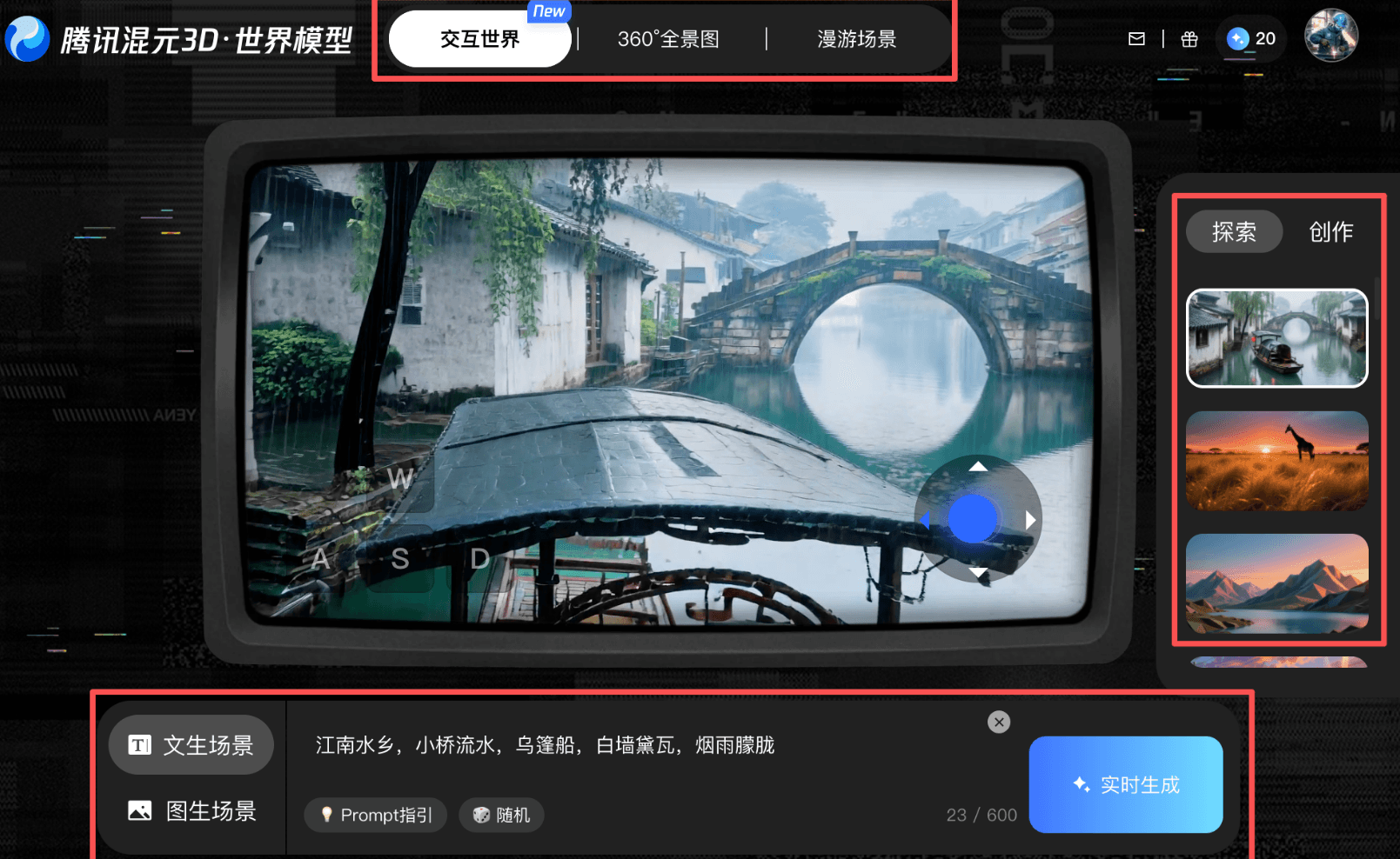 它目前已经开放了三种场景:交互世界、360全景图、漫游场景,并且每个场景都做了大量的样本效果案例,大家可以直接点击查看效果。